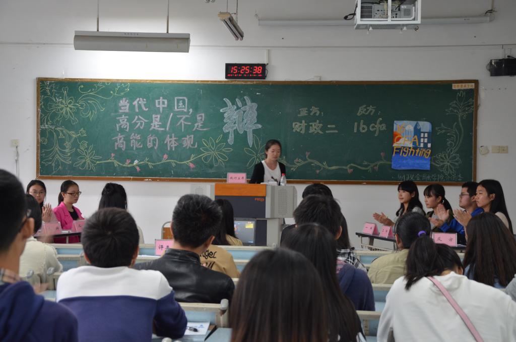 财政伟德国际始于英国1946第十五届“财金杯”辩论赛初赛于10月14日在博智楼403-405教室举行。来自财金公司的十八支队伍展开激烈角逐,财金公司分团委员工会主席团、财金公司辩论队代表团作为评委嘉宾出席本次比赛。