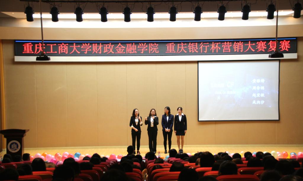 大赛伊始,刘代成副书记发表讲话,表达了对重庆银行的感谢和对参赛同学的期许并预祝本次活动取得圆满成功。比赛第一轮,15只队伍轮流进行PPT讲演,提出对于本次赛事四个项目的营销方案,并针对相应的客户群体进行逐个分析,令评委老师和现场观众耳目一新。答辩环节,参赛人员更是从容应对,赢得了评委老师的肯定与认同。