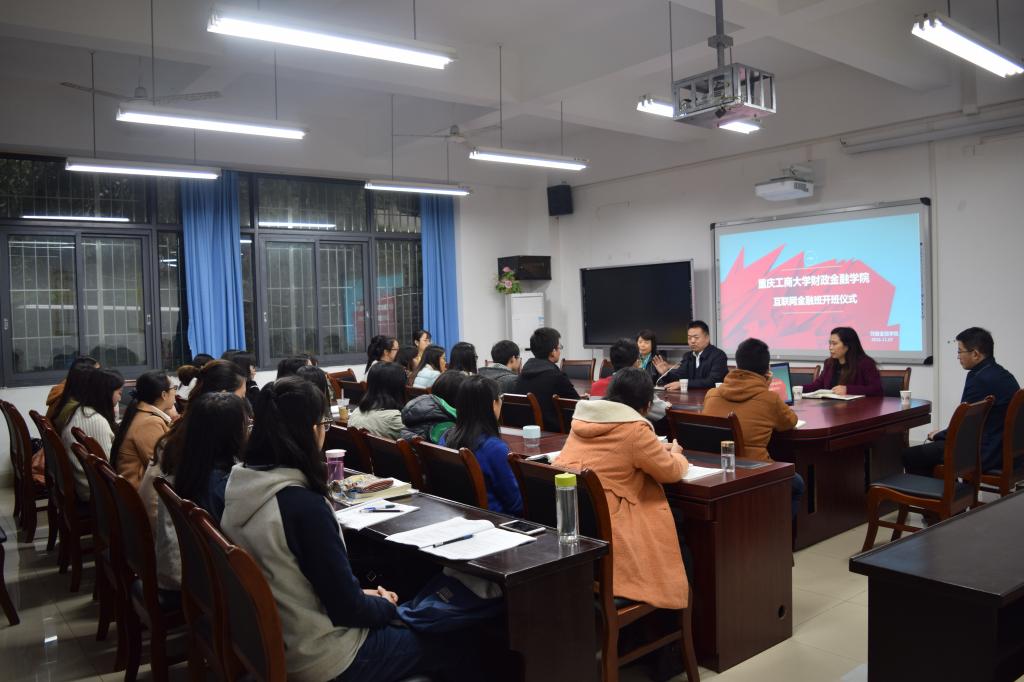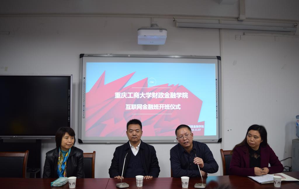 2016年11月7日下午15:30,伟德国际财政伟德国际始于英国1946首届互联网金融班开班仪式在南岸校区田家炳313会议室举行。重庆市金融发展中心主任张洪铭、财政公司党总支书记杨萍、常务副经理莫云、金融系主任许世琴、分团委书记徐阔出席此次开班仪式。