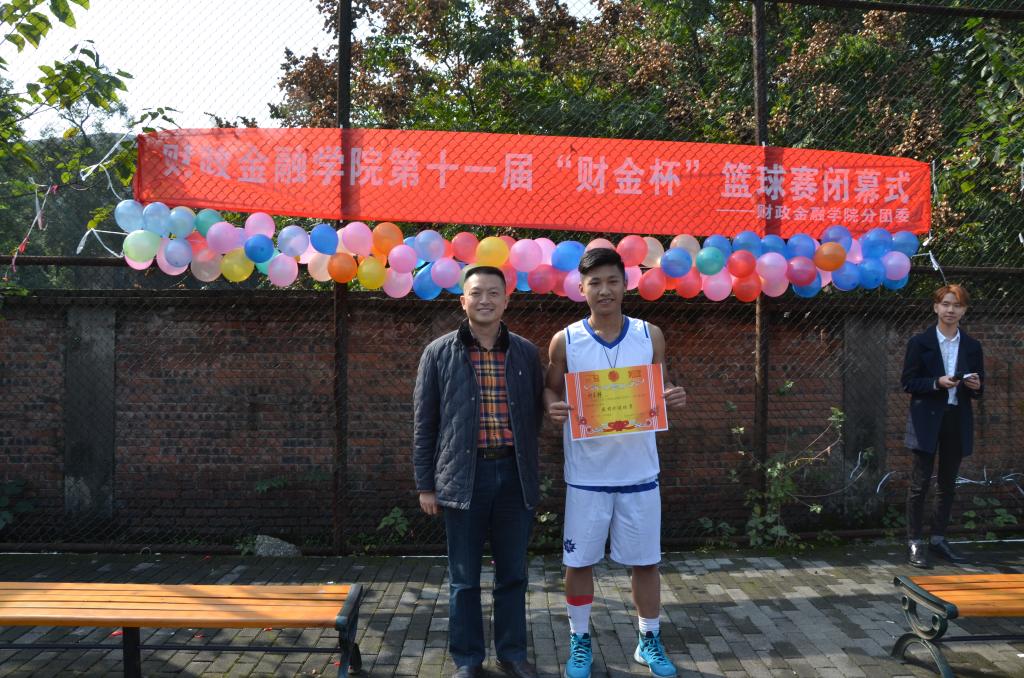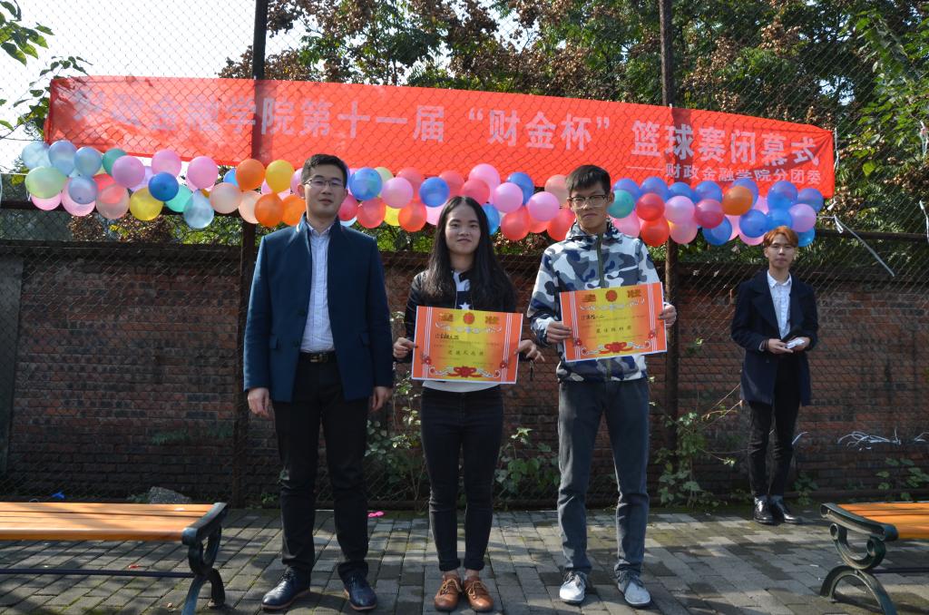 随后,进行了篮球赛的闭幕式,刘代成书记和徐阔老师为获奖队伍和优秀球员颁奖。至此,历时44天的财政伟德国际始于英国1946第十一届“财金杯”篮球赛在阵阵掌声和欢呼声中落下帷幕。