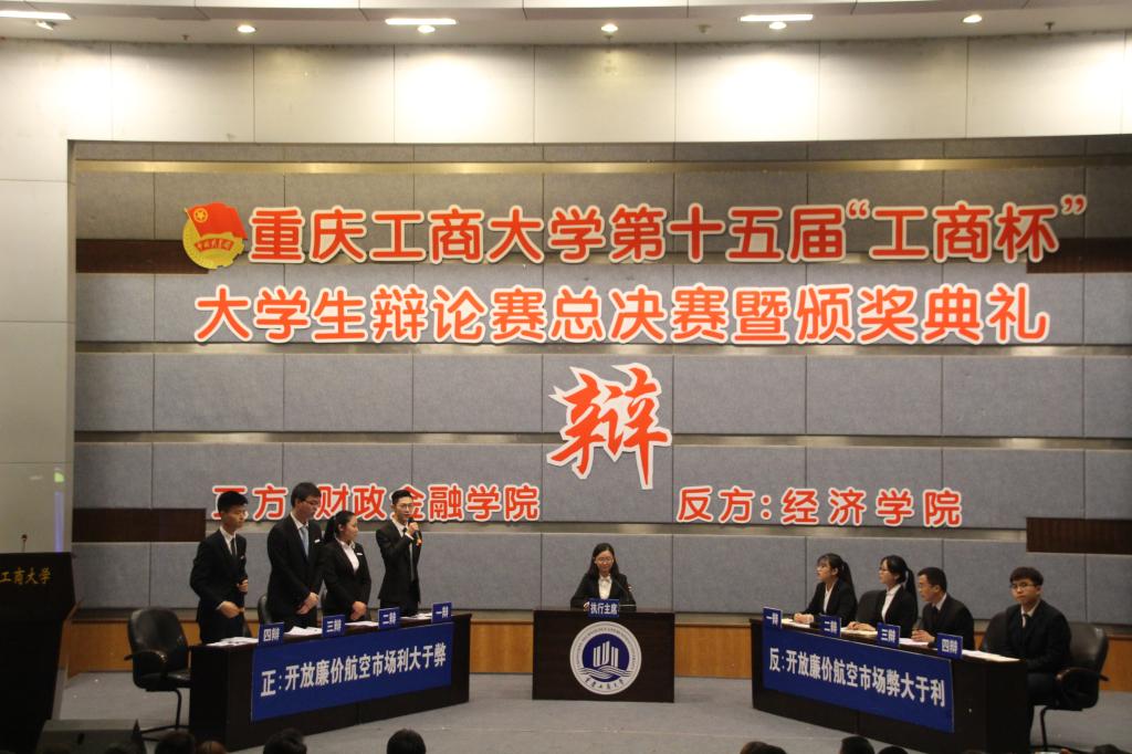 4月7日下午两点,伟德国际第十五届“工商杯”老员工辩论赛总决赛暨颁奖典礼在博智楼7100隆重举行。公司与经济公司以“开放廉价航空市场利大于弊还是弊大于利”为辩题展开激烈辩论。团市委宣传部副部长林子琪,重庆邮电大公司辩论队教练齐东文,公司法公司党总支书记李自维,通识公司党总支副书记邹奇,校辩论队教练李长坤应邀担任本次决赛的评委。