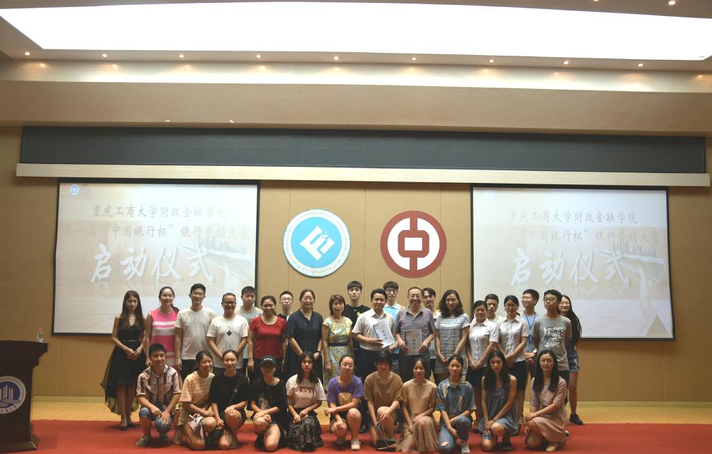2018年6月29日下午2点,由财金公司联合中国银行南岸支行所举办的第一届“中国银行杯”银行营销大赛启动仪式在田家炳209报告厅成功举行。中国银行南岸支行副行长符代权、副行长王霜、主任谢雅莉、副主任谭平、客户经理严茹心、客户经理易礼林;财政公司党委书记杨萍、经理刁孝华、副经理王兰、金融系系主任许世琴、金融系老师杨佳妮、分团委书记徐阔、研究生党支部书记杨宁作为嘉宾出席此次活动。