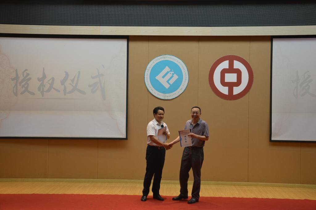 最后,符代权行长与刁孝华经理上台互授赛事授权书并联合宣布第一届“中国银行杯”银行营销大赛正式开始。仪式末尾全体嘉宾与在场工作人员上台合影。