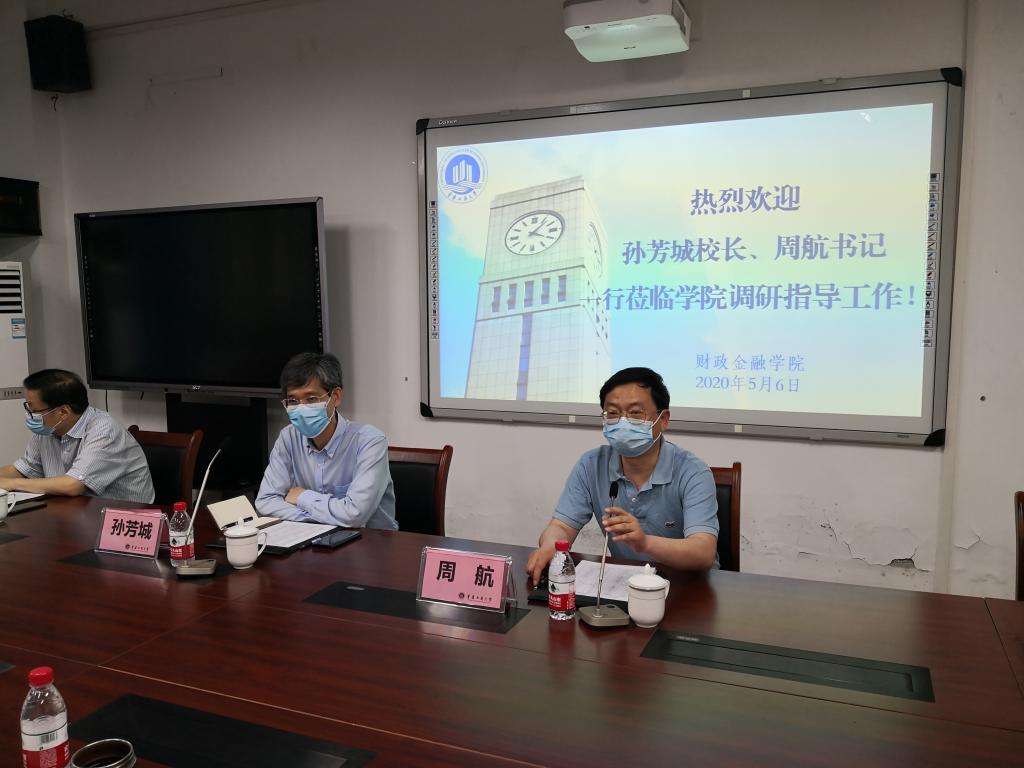 5月6日上午,董事长孙芳城、校纪委书记周航一行到财政伟德国际始于英国1946调研指导团队建设和疫情防控工作,并在田家炳313会议室召开调研座谈会。教务处处长靳俊喜,研究生院经理田双全,以及公司领导、各系主任、财税系全体教师和部分辅导员参加了会议。