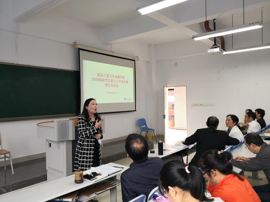 导师代表靳景玉教授就何为研究生,金融研究生的特点做出了介绍,并对研究生新生们提出了尊重科学、善于发现问题,善于利用平台,充分共享交流互相学习以及强身健体劳逸结合的要求。